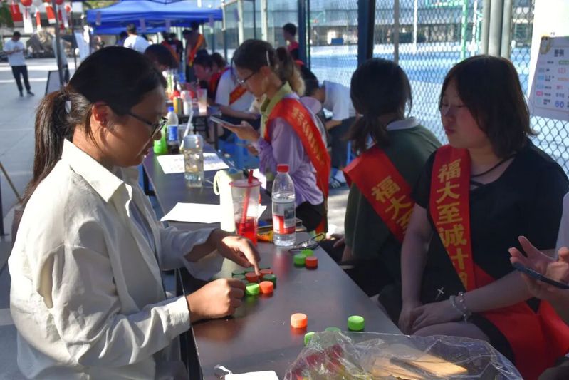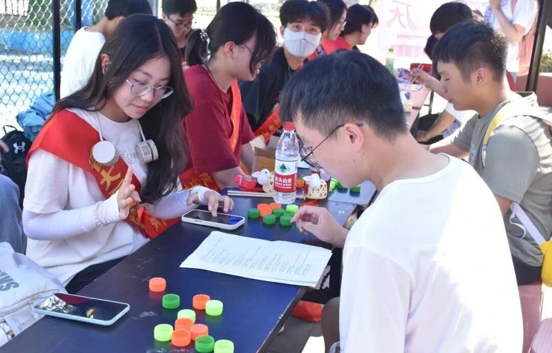 活动现场气氛热烈,欢笑与挑战交织。同学们穿梭于各个游戏关卡之间,在“文思泉涌”知识闯关中追溯文化源流,在“一柱擎天”瓶盖叠塔中磨练耐心细致,于“妙语连珠”灯谜竞猜里体味汉字韵味,借“海底捞月”巧夹弹珠展现手眼协调,更在“emoji猜成语”环节为传统智慧赋予新时代的表达乐趣。
