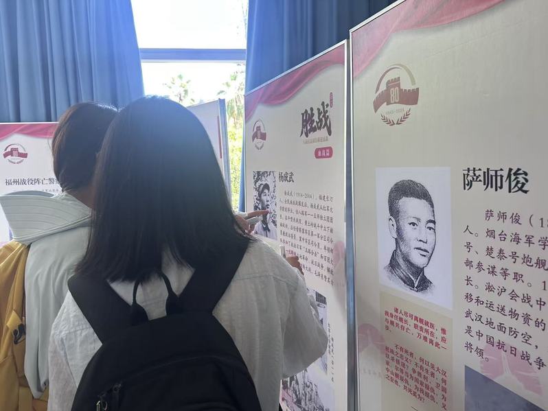 有同学在参展心得中写道:“今日参观让我深受触动,思想得到深刻洗礼。通过详实的史料与人物记载,我深入了解到八闽英烈在国家危难时的巨大勇气与牺牲精神。”该同学从陈嘉庚募集物资、高捷成投身金融抗战的事迹中,看见“家国”二字的具象表达;被北上抗日先遣队的冲锋、李林为国捐躯的决绝所震撼;也为杨成武、萨师俊的浴血坚守而动容。