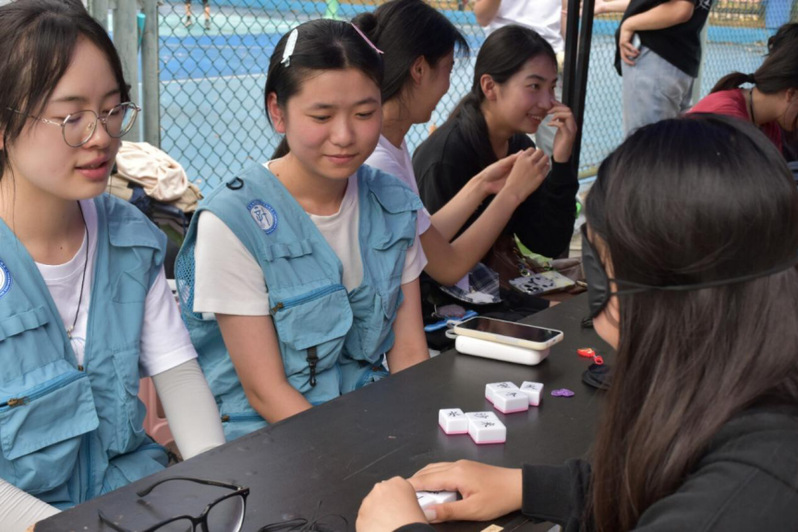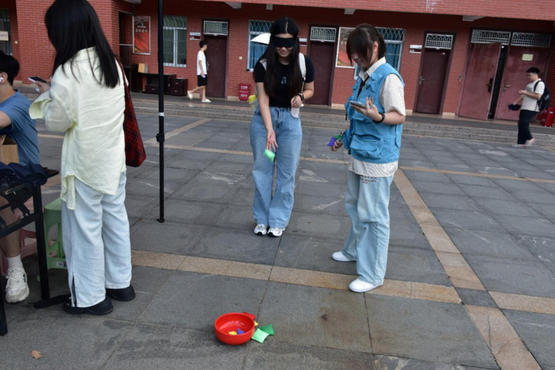活动设置四大趣味环节:“国际盲人节知识问答” 通过 10 道相关题目,让同学们在答题赢奖中加深对盲人群体的认知;“触觉摸字” 挑战要求蒙眼靠触觉辨别汉字,让大家体会 “以手代眼” 的艰难;“声音指令” 放物环节需依据声音指引摆放物品,展现声音对视障人士日常的重要性;“听位投物” 挑战则考验蒙眼投沙包的空间感知力,凸显普通小事对视障人士的挑战。