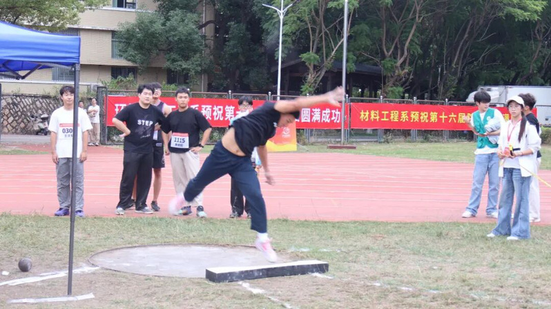 沉肩发力,掷定乾坤。2025年11月7日14时30分,院运会男子铅球决赛正式开赛,计算机工程系学子陈世源入围角逐。