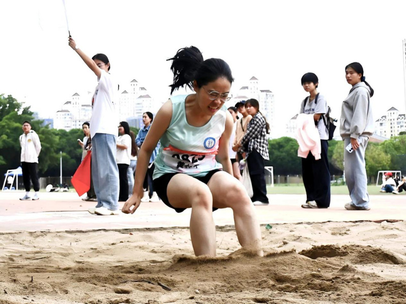 比赛启幕,两人拼尽全力:助跑节奏稳健,踏跳爆发力十足,腾空时似雄鹰展翅、舒展拥向天空,落地瞬间沙粒飞溅——掌声随即雷动,沙坑中深陷的脚印,正是拼搏的勋章。她们反复调整步点、挥洒汗水,每一次跳跃都化作高光时刻,跳出亮眼距离。最终,黄林平同学获第一名,林晓婷同学同样取得优异成绩。
