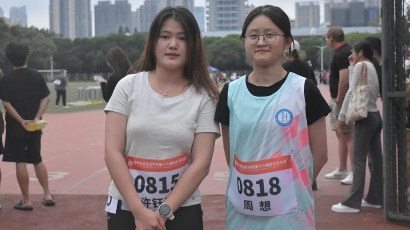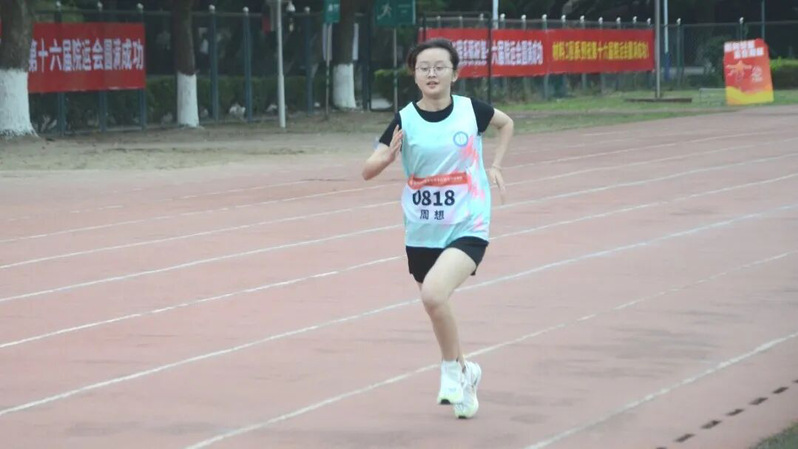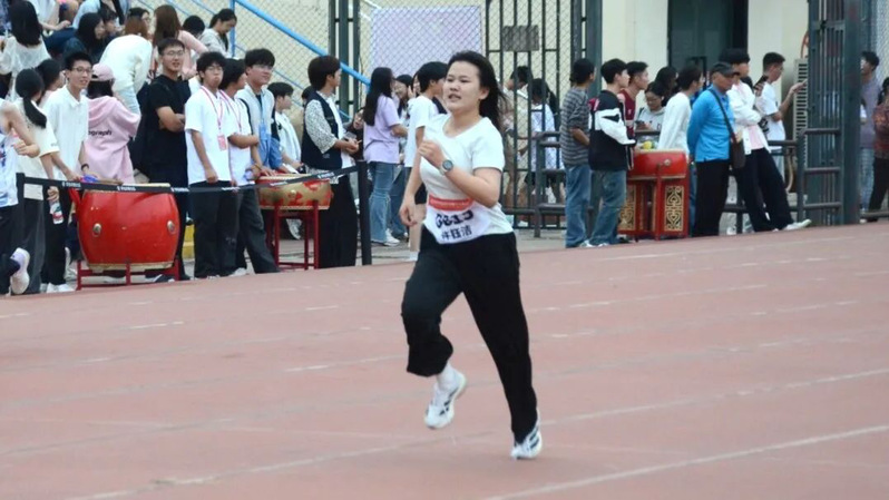 发令枪响,二人如离弦之箭疾驰而出。周想步频紧凑,许钰洁摆臂有力,弯道稳守内线,直道全力加速。她们的呼吸与脚步同频,汗水与信念共燃,在最后百米冲刺中展现出顽强的意志。最终,许钰洁以卓越的节奏掌控斩获第一名,周想也取得佳绩,她们双双用行动诠释了“拼搏即荣耀”。