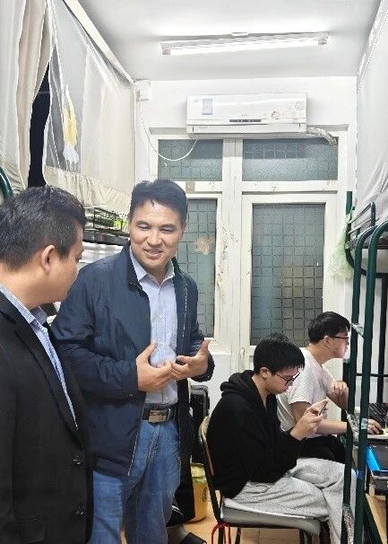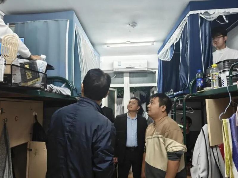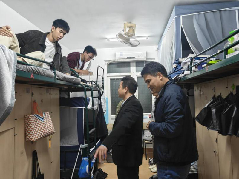 走访中,老师们与同学亲切交流,详细询问宿舍生活情况,同步关注环境状态,将“禁止吸烟、规范用电、及时收纳、随手锁门”等安全要点融入日常叮嘱。没有生硬说教,唯有同频沟通,让安全规范自然走进同学们的日常意识,明确宿舍常见安全隐患。