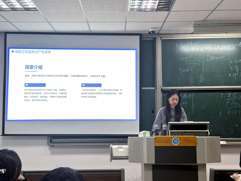为强化大学生急救技能与应急处置能力,深化对气道异物梗阻风险的认知,2025年11月17日,计算机工程系陈婕同学在化工楼312教室,主讲海姆立克急救法专题科普活动,帮助同学们掌握实用急救技能,为应对突发状况筑牢安全防线。