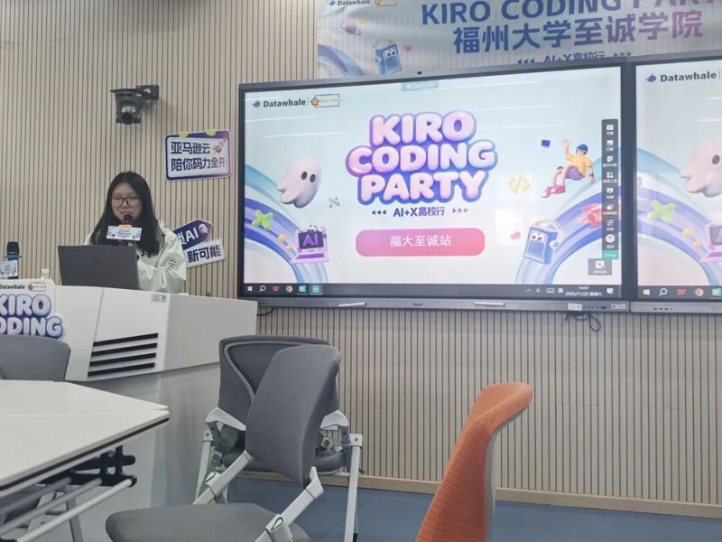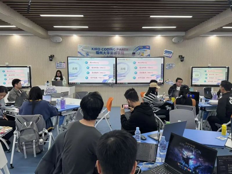 在胡晨与Datawhale培训讲师的全程指导下,学生们现场体验亚马逊云Kiro工具,亲手完成AI应用实践作品。操作过程中,大家或专注跟练步骤,或小声研讨技术细节,遇到卡点时讲师即时提供协助。最终,多个小组完成趣味Demo并限时分享成果,直观展现了云上AI开发的便捷性与强大效能,让参与者切实掌握了从需求到产品的AI开发全流程。