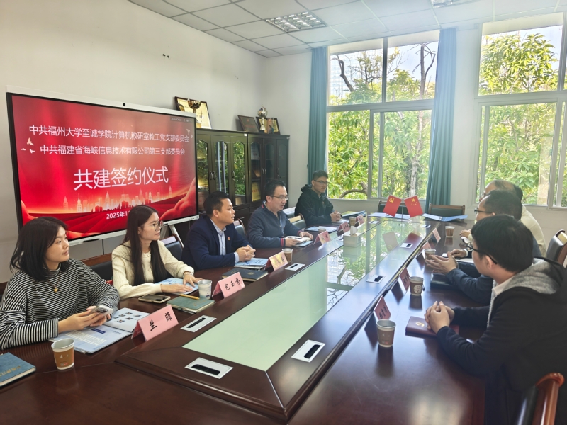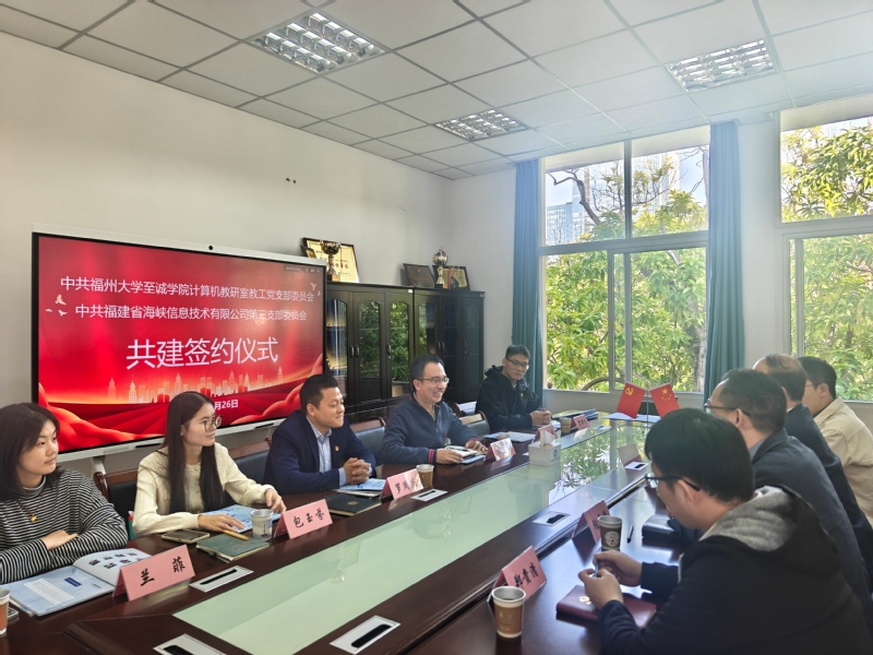 2025年11月26日,福州大学至诚学院计算机教研室教工党支部与海峡信息公司第三党支部正式签署党建共建协议。双方以“党建共建,协同育人”为核心目标,围绕党建与业务深度融合展开交流,标志着校企在资源共享、人才共育领域的合作迈入新阶段。