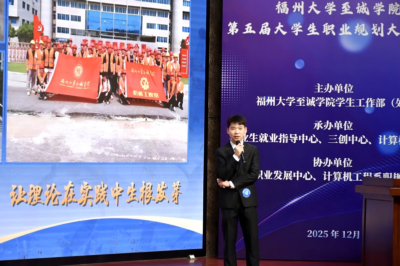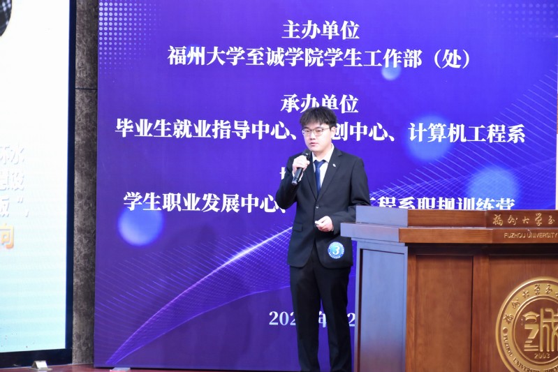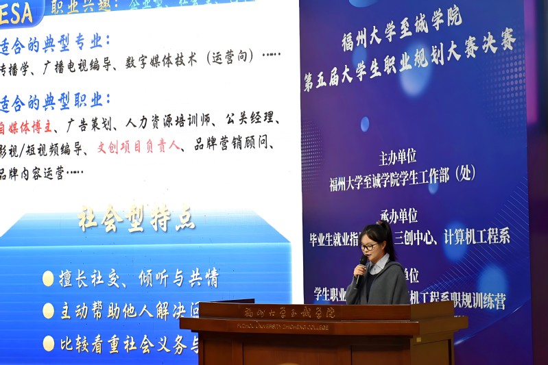 为全面加强大学生职业规划教育,提升学生就业竞争力,激发职业探索热情,12月15日晚,由学生工作部(处)主办,毕业生就业指导中心、三创中心、计算机工程系联合承办的福州大学至诚学院第五届大学生职业规划大赛决赛在科报厅隆重举行。学生工作部(处)处长朱剑雄,学生工作部(处)副处长潘梅英、吴晓敏,各党总支书记及各系团委书记出席活动。