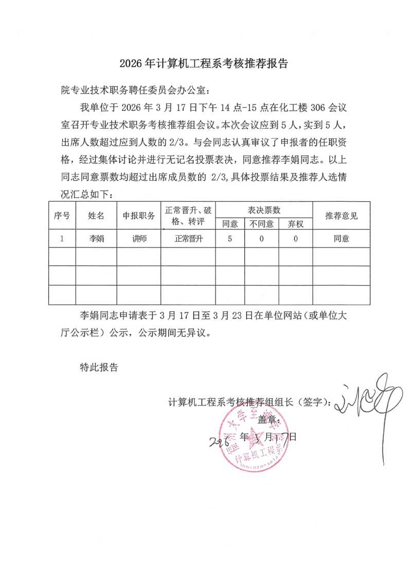 2026年计算机工程系考核推荐报告