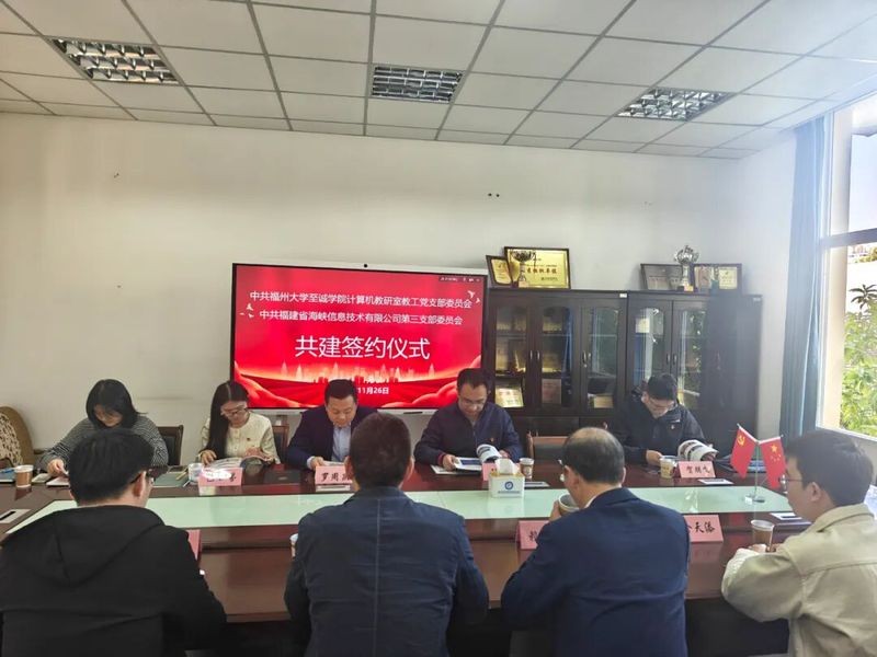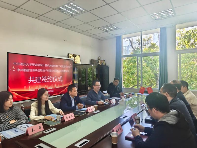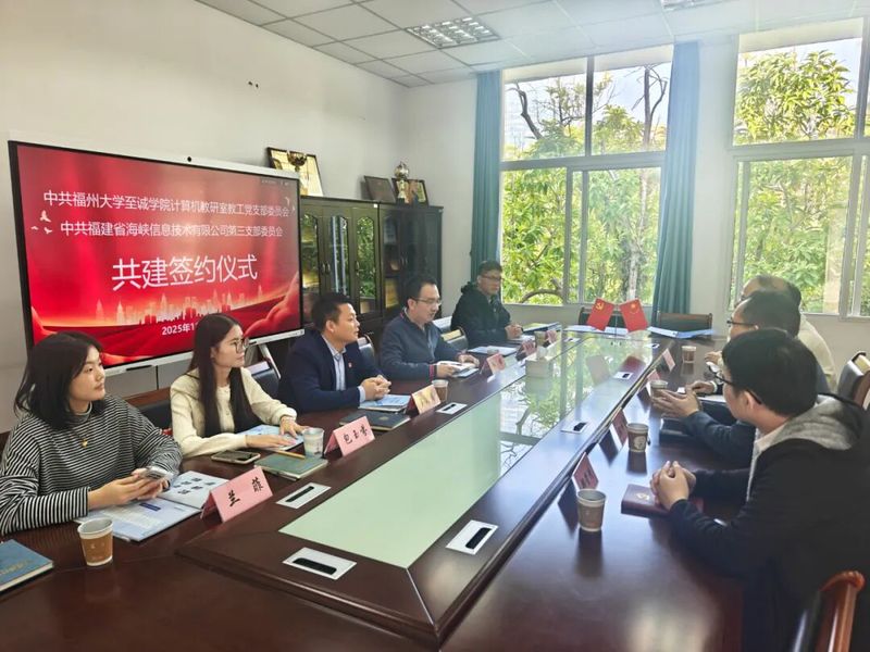 近日,福州大学至诚学院计算机教研室教工党支部与福建海峡信息技术有限公司第三党支部正式签署党建共建协议。双方以“党建共建,协同育人”为核心目标,围绕党建与业务深度融合开展专题交流与合作。