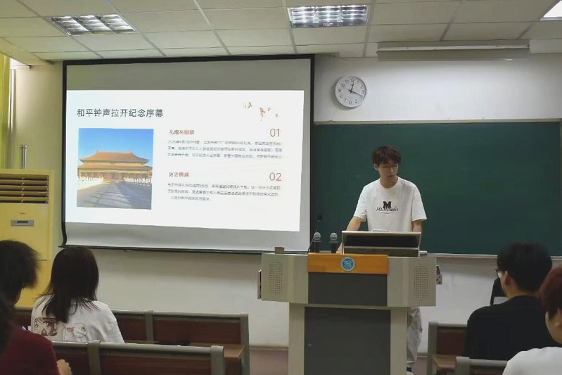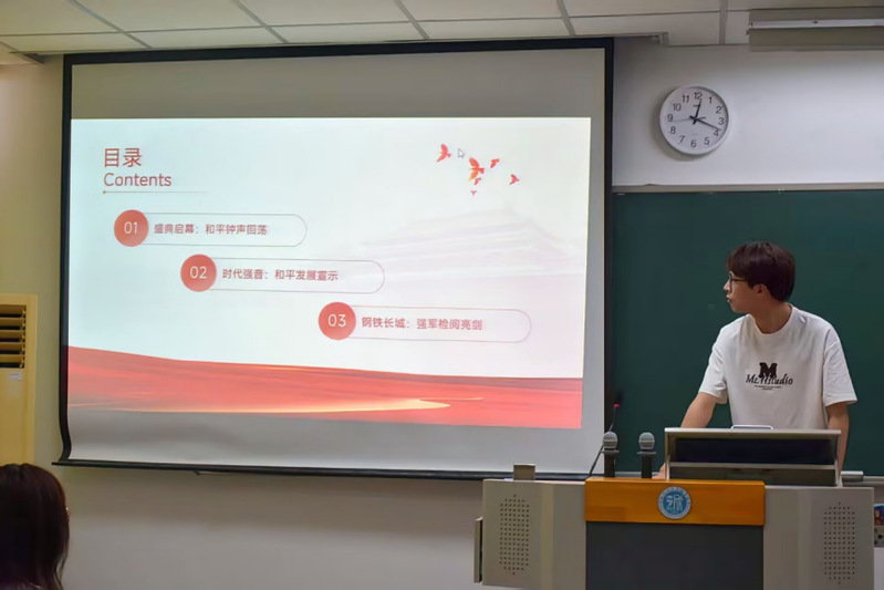 为纪念中国人民抗日战争暨世界反法西斯战争胜利80周年,本次活动聚焦于这场伟大胜利的重要意义,通过影像资料与历史讲述,引导团员铭记历史、缅怀先烈、珍爱和平、开创未来。郭昊伟结合习近平总书记“铭记历史不是为了延续仇恨,而是为了更好地开创未来”的重要指示,阐述了弘扬抗战精神、走和平发展道路的时代内涵,鼓励团员坚定理想信念,勇担青春使命。